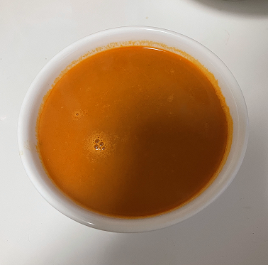 見た目があまりにも寂しすぎるのでクルトンとかパセリとか散らすと良いと思います