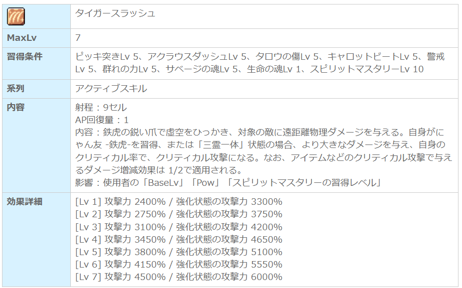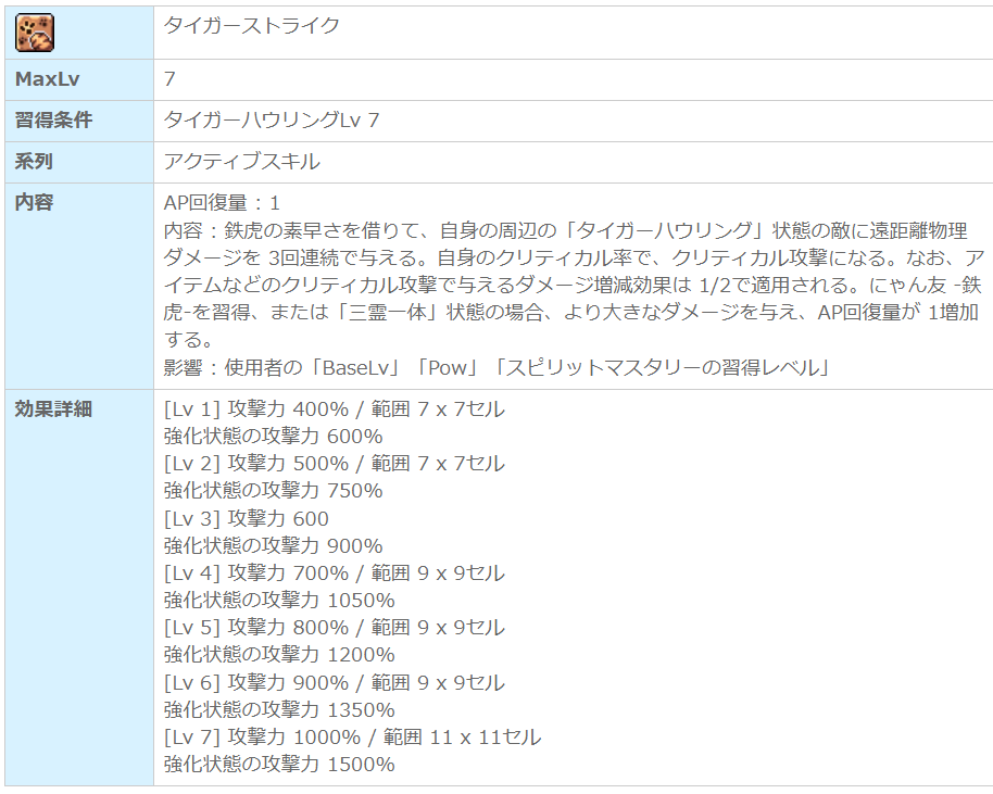 ではあるがAP消費スキルのため、虎スキルを使わない場合、使用不可