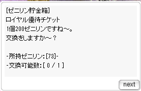 あとは道中で倒すとカウントされるゼニリンを集めるとロイヤル優待チケット等と交換・・・